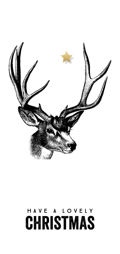 Langwerpige stoere kerstkaart met rendier gravure en ster